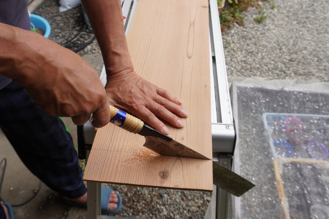 施工管理アプリ現場管理造作大工 造作大工の仕事とは?大工工事・内装工事との違いや必要スキル・資格まで初心者向けに解説 2025年10月9日 この記事をシェアする 家づくりの現場には、「造作大工(ぞうさくだいく)」と呼ばれる専門職がいます。普段はあまり耳にしない言葉ですが、私たちが暮らす住宅やオフィスの「住み心地」や「使いやすさ」を大きく左右する存在です。 この記事では、そんな造作大工の役割や仕事内容、必要なスキルや資格、最新のICT活用まで、初心者にもわかりやすく解説していきます。 造作大工とは?読み方と意味を紹介 造作大工(読み方:ぞうさくだいく)とは、建築工事のなかでも次の部分を専門に手がける大工職人です。 内装 仕上げ 日本の木造建築には「軸組大工(構造担当)」と「造作大工(仕上げ担当)」の2つが存在し、造作大工は軸組大工が対応した柱や梁の工事後に、ドア・窓枠・収納棚・階段・敷居など、生活空間に関わる部材をつくり上げます。 また造作大工の工事には、現場の状況に合わせて精密な寸法取りや調整を行うスキルが必要です。「手先の器用さ」と「空間全体を見渡す力」の両方が求められます。 造作大工と木工事・内装工事の違い 造作大工と木工事、内装工事について、違いが分からないとお悩みではないでしょうか。参考として以下に、それぞれの違いをまとめました。 木工事 造作大工 内装工事 担当範囲 柱・梁・床組などの構造部分 ドア・窓枠・収納棚・階段などの造作 クロス貼り・床仕上げ・塗装など 特徴 建物の強度を支える 生活の使いやすさ・美観を決定づける 見た目や仕上がり感を整える 代表的な工事例 木造住宅の骨組み 造付家具や障子・ふすま 壁紙やフローリング施工 つまり、造作大工は「建物の仕上げ部分」を担う専門職のことである一方、木工事や内装工事は工事自体の内容を表します。状況や作業内容にもよりますが、木工事や内装工事は軸組大工、その後に発生する仕上げ工事を造作大工が担当します。 造作大工の具体的な仕事内容 造作大工の仕事は「仕上げ工事」であり、軸組大工が行う木工事や内装工事と比べて、細部まで丁寧な加工と取り付けが求められます。ここでは、造作大工が担当する具体的な仕事内容を解説します。 建具(ドア・窓枠・障子・ふすま)の製作・取付 建具工事は、次のような日常で頻繁に使う部材を製作・取付する工事作業です。寸法精度や建付けの調整が求められるほか、開閉のしやすさや気密性、意匠性を意識した工事が欠かせません。 ドア 窓枠 障子 ふすま すでに形状が決まっている既製品の取付に対応することもありますが、現場状況に合わせて数mm単位での加工や調整を行うなど、繊細な調整技術も必要です。 家具(収納棚・造付家具)の製作・取付 造作大工は、次のような造付家具を製作・設置するのも仕事です。 収納棚 カウンター 本棚 市販の家具と異なり、空間の寸法や利用者の生活動線に合わせて設計するため、デッドスペースの有効活用が可能です。特に注文住宅などで工事を担当するケースが多く、リビングやキッチンに合わせて、機能性とデザイン性を両立させた家具をつくり出します。 階段や敷居などの内装木工の工事 造作大工は、次のような場所にある「段差」「角度」「踏み面」の寸法を正確に施工し、上り下りのしやすさやバリアフリー性を確保するのも仕事のひとつです。 階段 敷居 鴨居 開口部 特に敷居や鴨居は、工事による調整の品質が建具の動きを左右するため、滑らかな開閉を実現するために造作大工の技術が欠かせません。 造作大工の平均年収相場 厚生労働省が公開している「job tag」によると、造作大工を含む「大工」というカテゴリの平均年収は448.7万円(平均年齢40.6歳)です。 平均年収は19歳の段階から年々上昇し、50~54歳になる頃には平均630.6万円まで収入が増え続けると試算されています。有効求人倍率も2.47倍と高く、建築系の仕事のなかでも人気の高い職種です。 (出典:厚生労働省「職業情報提供サイト job tag(令和6年度)」) 造作大工に必要なスキル(器用さ・コミュニケーション能力) 造作大工には「手先の器用さ」と「人との調整力」の両方が欠かせません。また棟梁や他職人との連携、施主への説明・提案も多く、技術力だけでなく信頼関係を築く力が重要です。 ここでは、造作大工を目指している方向けに、働くうえで必要になるスキルを紹介します。 木材の知識(硬さ・伸縮・加工性) 造作大工は、木材を取り扱う仕事が多いため、材料となる木材の特性を深く理解する必要があります。 たとえば、スギやヒノキのように柔らかいもの、ナラやカシのように硬いものがあり、乾燥による伸縮も考慮して加工しなければなりません。樹種ごとの特徴を理解し、適材適所で使い分けることで、美観と耐久性の高い仕上げを実現できます。 精密な作業と器用さ 建具や造付家具はわずかなズレで使い勝手が大きく変わるため、造作大工には高い精密さと器用さが