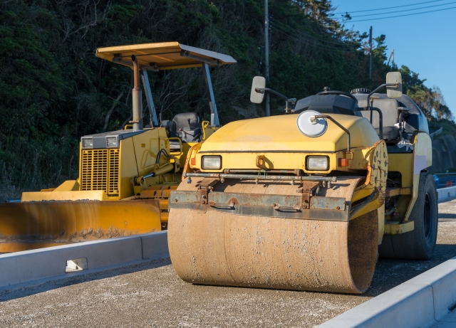 振動ローラー:路盤・盛土の締固めに必須。土質や層厚に応じて機種・振動条件を選び、所要の締固め度を確保します。いずれも有資格者の操作と、作業区域の明確化、接触災害防止が基本です。