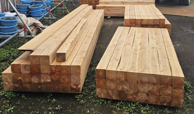 バタ角施工管理アプリ現場管理 バタ角とは?サイズ・用途・価格・他の木材との違いをわかりやすく解説|現場の基本知識 2025年11月26日 この記事をシェアする バタ角は「仮設や型枠など、現場で最も汎用性の高い角材」です。型枠や支保工などでよく使われる木材ですが、角材や2×4材との違いがあいまいなまま使っている方も少なくありません。 そこでこの記事では、バタ角の概要や他の木材との違い、さらには用途やコストについてわかりやすく解説します。また、バタ角などの資材管理を効率化する方法も紹介しているので、ぜひ参考にしてみてください。 バタ角(ばたかく)とは? 建設現場や型枠工事で日常的に使われる「バタ角」は、90〜100mm角ほどの角材を指します。杉や松などの針葉樹を原料とし、軽くて加工しやすいことから、仮設・支保工・養生など多用途に使われる基本木材です。 以下にバタ角が現場で多用されている理由を整理しました。 木の柔軟性が高く、切断・釘打ち・組立が簡単である 杉・松など国産材が多く、安定供給・価格変動が小さい 型枠や足場などで再利用できるためコスパが良い たとえば鉄筋コンクリート工事では、ベニヤ板固定用の枠組み(型枠)として、またコンクリート打設時の一時的な支え(支保工)として利用されるケースが多いです。強度・コスト・扱いやすさのバランスから、多くの工事現場で利用されています。 他の木材(角材・りんぎ・2×4材・間柱)との違い バタ角は、次のような類似の形状の木材と混同されたまま使われがちです。 木材名 主な用途 特徴 寸法の目安 バタ角 型枠・仮設・支保工 安価・再利用可・現場汎用性が高い 90角〜100角 角材 構造材(柱・梁) 建築の主要構造に使用・強度が高い 多様(45角〜120角) りんぎ (輪木) 支保工・足場 丸太状・高強度・重い 直径90〜120mm 2×4材 住宅構造材 規格寸法統一・乾燥安定・DIYにも人気 約38×89mm 間柱 壁下地・間仕切り 室内造作向き・軽量 約30×105mm 特に似ているのが、バタ角とりんぎであり、非構造用途で用いるのが特徴です。そのなかでもバタ角は、価格が安く軽量であり、仮設や補助としての役割があります。強度よりコスパ・取り回しの良さが重視されるため、価格・流通量・用途で選び分けることが重要です。 バタ角のサイズ規格と種類 建設現場で使用されるバタ角には、明確な寸法規格と木材の種類(樹種・等級)があります。 特に型枠・仮設・支保工などの作業では、サイズの違いが耐荷重や安定性に直結するため、正しい寸法理解が欠かせません。 一般的な寸法(90角・100角など) バタ角の標準サイズは、90mm角(=9cm角)または100mm角(=10cm角)が主流です。木材の流通上、この2サイズが最も多く、型枠・支保工の規格にも適しています。 実際、自治体などがまとめている「労務・資材局統一単価(建設系)」などでも、90角のバタ角が標準の単価として挙げられています。 (出典:沖縄総合事務所 開発建設部「令和7年度 労務・資材局統一単価(建設系) 」) 同様に、製材所などでも90角での提供が主流であり、標準寸法として扱われています。 (参考1:株式会社 高橋製材所「バタ角 杉桧」) (参考2:有限会社 横田材木店「バタ角 杉 国産」) なお、90角は軽量で扱いやすく、型枠の桟木や仮設養生材に多用されています。一方で100角も流通しており、強度が高く、支保工や足場下地など「荷重がかかる場面」に使用されているのが主な違いです。 市販流通材は長さ2m・3m・4mが主で、現場加工もしやすい長さで提供されています。 木材の等級と強度(JAS規格の概要) JAS(日本農林規格)では、バタ角は一般製材(押角・耳付材・まくら木等含む)に該当します。 したがって、JAS規格による強度等級(E・F等級)などの数値評価の対象外であり、その代わりとして、寸法・含水率・節・割れなどの品質基準で判断されます。 参考として以下に、バタ角の参考情報を整理しました。 項目 内容 JAS区分上の位置づけ 一般製材(下地用製材・押角に近い) 用途 型枠・支保工・仮設・養生など非構造用途 強度評価 規格上の曲げ・圧縮試験対象外(構造材ではない) 品質基準 寸法・含水率・節・割れ等で判断 注意点 長期使用では反り・割れ・強度劣化が起きるため、乾燥・保管管理が重要 参考:農林水産省「製材の日本農林規格(平成19年8月29日告示 第1083号)」 現場では「強度試験値」よりも、「乾燥状態や反り・割れの有無」を目で確認し、用途に応じて選別・管理することが重要です。 バタ角の主な用途一覧(型枠・支保工・仮設・養生など) バタ角は、建築・土木・内装など幅広い現場で「補助材・仮設材」として使用される万能木材です。特に型枠・支保工・養生・仮設など、施工の安全性や精度を支える脇役として欠かせません。 用途 使用例 型枠工事 ベニヤ型枠の補強枠・桟木・つなぎ材 支保工 コンクリート打設時の型枠支持材・支柱受け 仮設構造 足場下地・通路補強・段差スロープ 養生材 床・壁・設備保護の当て木 内装・リフォーム 下地・墨出し