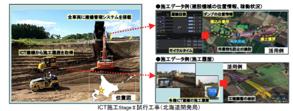 施工管理アプリ現場管理 ICT施工とは?国土交通省の取り組み・現場導入の流れ・メリットと課題をわかりやすく解説 2026年1月21日 この記事をシェアする 「ICT施工って結局なに?」「現場に本当に役立つの?」と感じている施工管理者や現場責任者は少なくないでしょう。 結論から言えば、ICT施工は「測量・設計・施工・検査」をデータでつなぎ、工事のムダや属人化、人手不足を解消できる現場DXの中心技術です。この記事では、ICT施工の概要や制度、作業内容、導入の流れをわかりやすく解説します。 ICT施工とは? ICT施工とは、以下の技術を活用して、施工の精度と生産性を高める施工方式です。 3次元測量(点群データ) 3D設計データ ICT建機(MG/MC) 【MG/MCとは】 マシンガイダンス(MG)・マシンコントロール(MC)の略称 たとえば、ドローン測量(写真・レーザー)で取得した点群を3D設計に反映し、そのままICT建機に投入すれば、機械が設計データにもとづいて半自動・自動で土工作業や整地を行えるようになります。 また、ドローンで定期的に定点測量を繰り返せば、最新の点群や3Dモデルの状況をもとに、施工誤差といった出来形を確認できるのも魅力です。 このように、ICT施工は、これまで人が行ってきた作業を最小限に抑え、データやそれを扱える機器だけで対応できるようにする画期的な仕組みです。 (参考:i-Construction・インフラDX推進コンソーシアム公式サイト) 従来施工との違い(2D施工との比較) 3Dモデルや点群データを活用するICT施工は、従来の2D図面を用いた工事とは異なり、精度・スピード・再現性に優れています。以下に施工の違いをまとめました。 項目 従来(2D) ICT施工(3D) 測量 トータルステーション ドローン・レーザー 設計 2D図面 3D設計データ(3Dモデル) 施工 丁張り+人の操作 MG/MCによる自動制御 検査 人手計測 3D出来形管理 【丁張りとは】 建物の正確な位置・高さ・水平・勾配などの基準を設定するために設置する仮設の目印のこと(木材などを使用) まず2D施工は、人力での作業が多いため、経験値や技術力の差によって成果が左右され、現況測量と図面の不整合が起きやすいのが課題でした。 一方、ICT施工は3Dモデルを用いてリアルな地形状況、建物状況等を把握でき、技技術的な誤差を減らしながら、整合性の高い状況把握が可能になります。 このように、1工程ごとに必要な人数を最小限に抑えられることから、人手依存を減らし、出来形のばらつきを抑えられるのがICT施工の魅力です。 ICT施工は建設業界をどう変える? 結論として、ICT施工は、建設業界が抱えている「人手不足」「品質のバラつき」「生産性」の課題を解決できる有効な手段です。 国土交通省が掲げる、建設業界版の働き方改革の取り組みである「i-Construction」では、建設現場の生産性を2025年までに2割向上させる目標が掲げられており、ICT施工がその中核を担う施策として挙げられています。 2016年から建設現場の生産性を2025年度までに2割向上を目指し、建設生産プロセス全体の抜本的な生産性向上に取り組むi-Constructionを推進。 引用:国土交通省「i-Construction 2.0(令和6年4月)」 少子高齢化や業種の多様化といった影響を受け、建設業界の就業者数は年々減少傾向にあります。(1997年時点で685万人だった就業者数が2024年には477万人に減少) 出典:日本建設業連合会「建設業の現状|4. 建設労働」 そのためICT施工は、減り続ける建設業界の人手を補う重要な手段として、多くの現場での活用が進んでいます。 国土交通省が推進するICT施工の取り組み 国土交通省が「i-Construction」を推進したことに伴い、公共工事の発注・検査・出来形管理のルールが、ICT施工を前提とした運用へと移行しつつあります。ここでは、民間企業が押さえておきたい国土交通省の取り組みを紹介します。 ICT施工ガイドライン・基準の考え方 ICT施工は「民間企業が独自に運用するもの」ではなく、国交省のガイドラインと基準に沿って運用しなければなりません。参考として以下に、準拠すべきガイドラインや基準を整理しました。 国土交通省|要領関係等(ICTの全面的な活用) 国土地理院|無人航空機(UAV)を用いた公共測量~UAV写真測量~ 国土交通省|LandXML1.2 に準じた3次元設計データ交換標準(案) 特に公共工事では、ICT施工を行うために出来形管理要領・測量要領・電子納品基準などが詳細に定められています。 ICT施工が一般化しようとしている現在、頻繁にガイドラインが更新されているため、常に最新の情報を把握するように意識してください。 国土交通省・自治体・業界におけるICT施工の事例 ICT施工はすでに、国・自治体の公共工事で標準化が進んでいます。 たとえば、2023年度の直轄土木工事では、ICT施工の実施率が87%に達し、StageⅡ(施工データのリアルタイム活用)や自動施工の試行工事が32件実施されています。 出典:国土交通省「i-Construction 2.0の取組状況 中小建設業・地方公共団体の取組状況」 さらに、砂防・ダム・河川工事では遠隔施工を用いた試行が11件行われるなど、